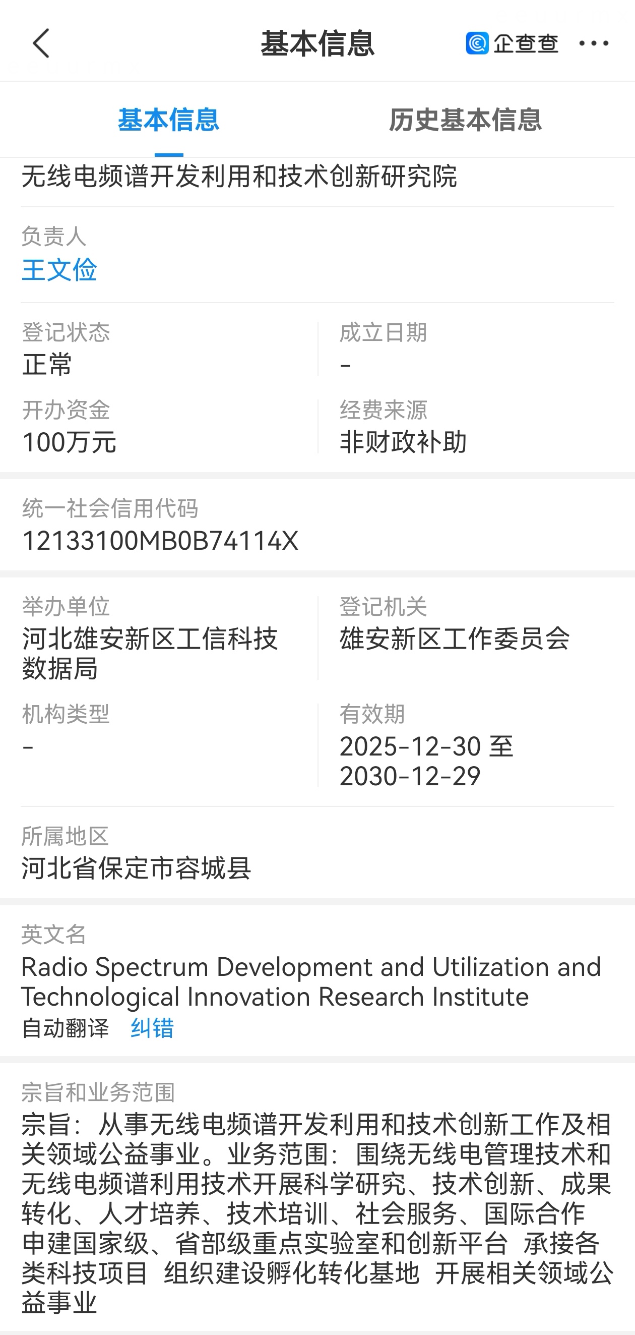 据国际电信联盟(ITU),2025年12月中国提交新增20.3万颗卫星的频率与轨道资源申请,其中申请了19.3万颗卫星资源的“无线电创新院”引发关注。其全称为无线电频谱开发利用和技术创新研究院,位于雄安新区,举办单位为河北雄安新区工信科技数据局。宗旨为从事无线电频谱开发利用和技术创新工作及相关领域公益事业,其业务范围包含:围绕无线电管理技术和无线电频谱利用技术开展科学研究、技术创新、成果转化、人才培养等;申建国家级、省部级重点实验室和创新平台;承接各类科技项目;组织建设孵化转化基地;开展相关领域公益事业。